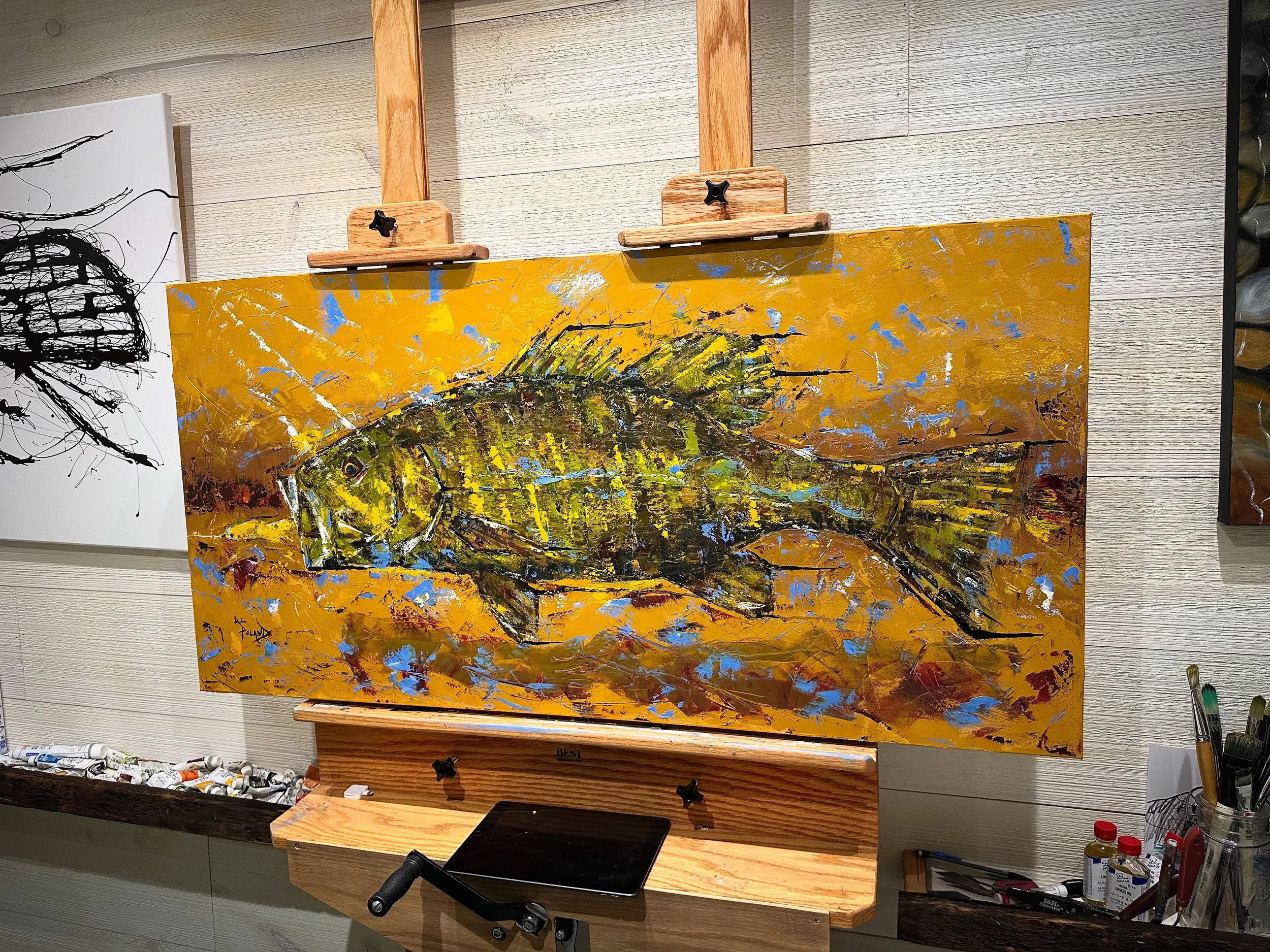 Below is a sampling of past works and commissions. Alex’s style is fluid and constantly changing. The black and white paintings are “drizzle”. This style uses toothbrushes to drizzle the canvas with latex house paint. The full color works of art are primarily oil. This is Alex’s favorite medium. His approach ranges from brush to pallete knife work. The texture and freedom of the pallete knife appeal to many, as does the sharpness and realism of his brush work.