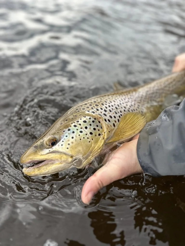 As many remember 2025 brought severe drought to Maine. We still are not out of the woods yet. Hopefully our snowpack melts slowly and we have a nice steady supply of rain through the summer. April is a tough month to plan fishing trips in Maine. Due to flows being unpredictable and water temps being low, the fishing can be great or it can be challenging. However, if you are a trophy hunter for trout than this is the month for you! The conditions have to align perfectly, but when they do, this is when we catch our largest trout of the year. In April the three most important factors are flow, clarity, and temperature. Often in April fly fisherman are looking for that nice warm day to enjoy the river. Granted after a long winter this is a nice reprieve. However, this is not always the day that will show the best fishing. In early spring even a 2-3 degree spike in water temperature will bump a trout’s metabolism. The problem with a super warm day is it often lowers the river water temp. This is due to excessive snow melt. This is where knowing a guide can be very helpful. They have an intimate relationship with their rivers and tributaries and understand the nuances of flow, clarity, and temp. It is not something that a USGS site can tell you. Whether the clarity will improve during the day or the river will spike in temp, or drop in temp, etc. But a guide through countless days on the water can have almost a sixth sense. When all 3 factors (flow, clarity, temp) align it can make for a very, very exciting day. Beware though, success in April is not always measured by the number of fish you catch but the size! Streamer fishing is the name of the game, in Maines large rivers, in early spring. It is fun for those that enjoy bombing the bank with meat and looking for that reactionary bite!